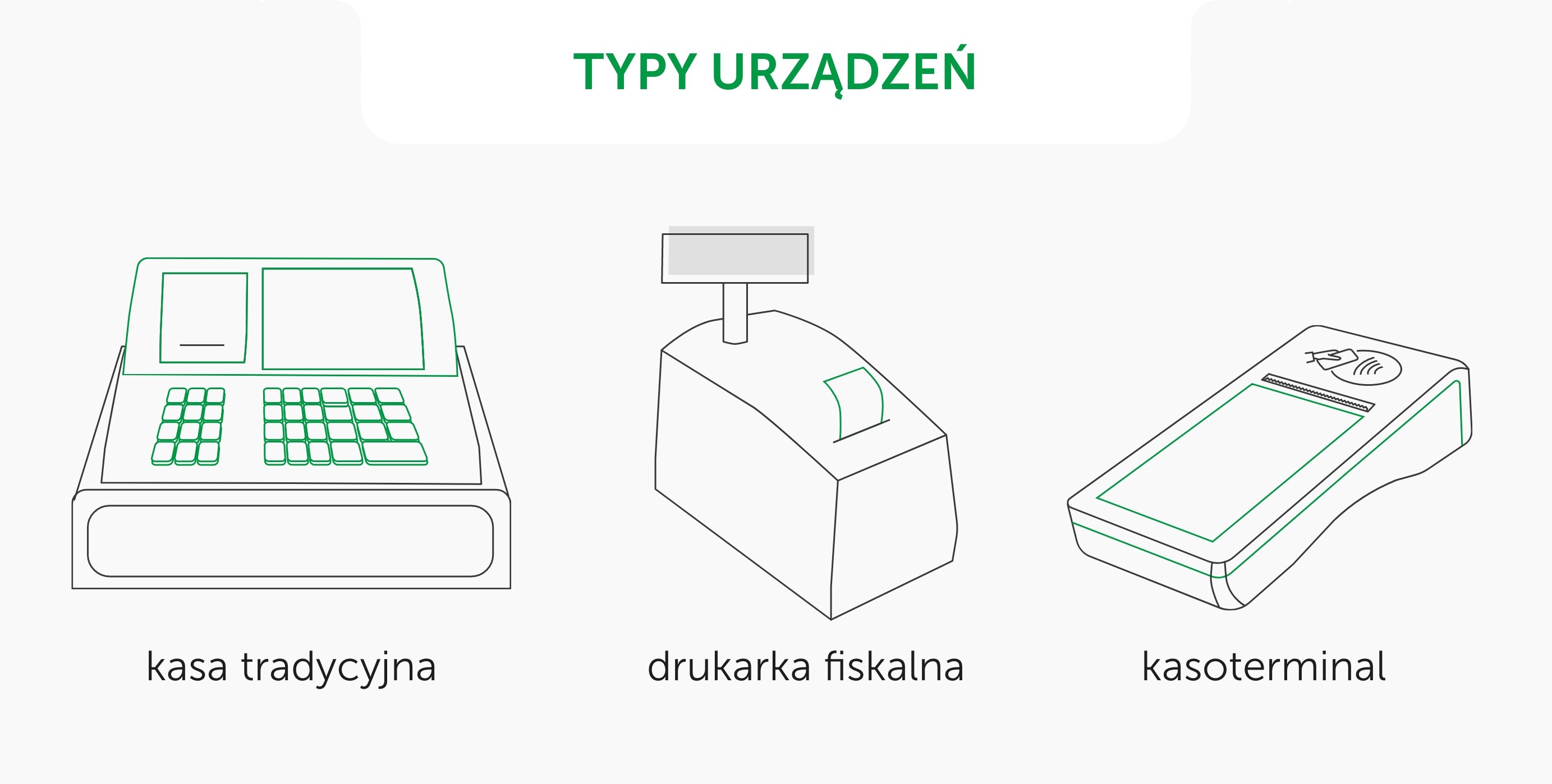 Jeśli chodzi o rodzaje urządzeń fiskalnych, to na rynku polskim obecnie do wyboru są trzy główne typy urządzeń: kasy fiskalne, drukarki fiskalne oraz kasoterminale. Każde z nich ma inne przeznaczenie i odpowiada na różne potrzeby biznesowe.