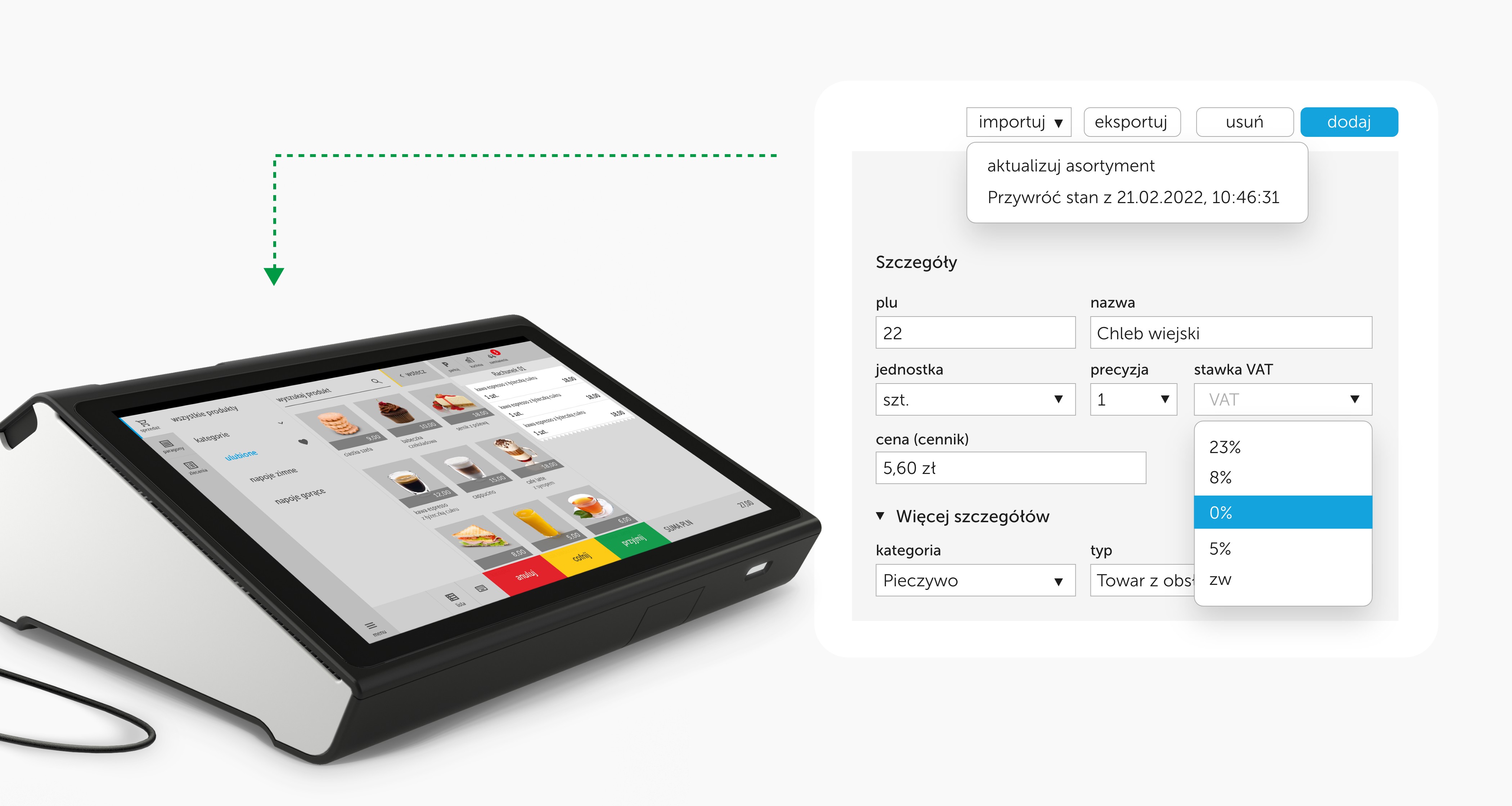 Zmian stawek VAT w kasie fiskalnej możesz dokonać samodzielnie. Jeśli zmiana jest globalna, dotyczy większej liczby produktów może się to okazać bardziej skomplikowane i wymagać wsparcia serwisanta. Najprościej dokonasz zmian stawek VAT w kasoterminalu, czyli urządzeniu opracowanym przez polską firmę iPOS. Ponieważ kasoterminal ma łączność z systemem do którego zalogujesz się z dowolnego urządzenia z internetem aby dokonać zmian stawek VAT, to nie musisz być w sklepie. Zmieniając stawki VAT w systemie iPOS web w dowolnym momencie w bardzo prostym i czytelnym interfejsie zostaną one zmienione we wszystkich Twoich punktach w jednym momencie bez udziału serwisanta. Jeśli oczekujesz wsparcia serwisu twojego kasoterminala, to w zakresie zmian stawek VAT, serwis pomoże Ci całkowicie zdalnie. W odróżnieniu do kasy fiskalnej nie jest konieczny przyjazd serwisanta na miejsce.
